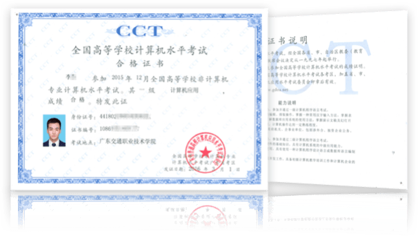 方式二:如学校的期末考试引入了以广东省高等学校考试管理中心为第三方的考试认证体系,即学校采用了CCT考试题库以及CCT考试形式进行课程的期末考试。则学生参加该类期末考试的成绩及格后,可以自愿申请CCT证书,申请方式可以咨询各校考试承办单位,例如教务处、学院或系部等。